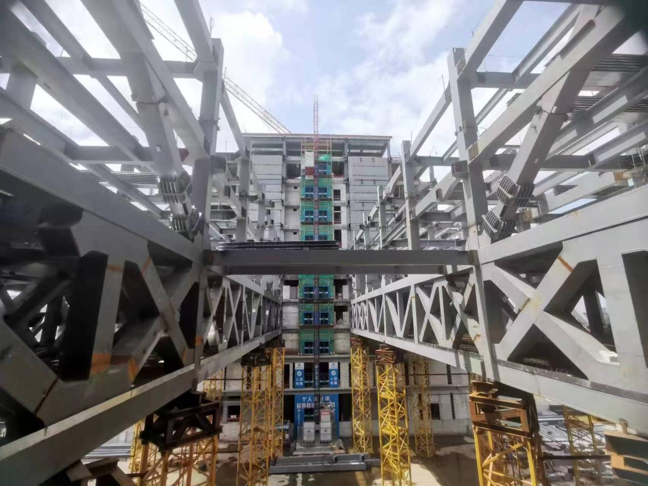 過去五年間,團(tuán)隊肩負(fù)雙重使命,既要積極探索新興技術(shù)領(lǐng)域,又要緊密貼合實際需求,開展針對性技術(shù)攻關(guān)。面對大跨度建筑高效承載與裝配式鋼結(jié)構(gòu)工廠化制造的行業(yè)難題,團(tuán)隊深入剖析痛點,歷經(jīng)多次驗證、迭代與優(yōu)化,最終成功突破了技術(shù)“瓶頸”,創(chuàng)新研發(fā)出獲獎專利——“大跨度支座跨中協(xié)同預(yù)應(yīng)力箱形連續(xù)鋼梁柱結(jié)構(gòu)”。該新型結(jié)構(gòu)可優(yōu)化結(jié)構(gòu)受力分布,顯著提升彈性承載力,有效減少鋼梁跨中撓度與支座變形,既增強了大跨度建筑韌性,又滿足了受損建筑快速功能恢復(fù)的特殊需求。為不斷提升自身技術(shù)水平,團(tuán)隊還積極開展交叉學(xué)科研究,在技術(shù)與進(jìn)度雙重壓力的嚴(yán)峻考驗下,憑著“死磕”到底的韌勁,各司其職、緊密協(xié)作,共同推動了多項配套產(chǎn)品的成功研發(fā)與落地,為行業(yè)整體技術(shù)革新貢獻(xiàn)了重要力量。