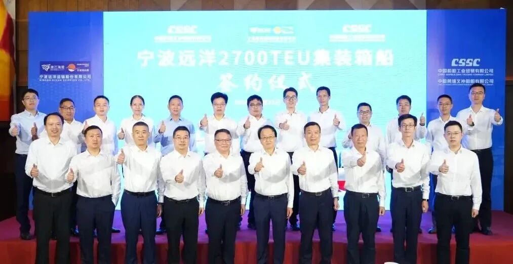 10月21日,中船集團旗下黃埔文沖聯(lián)合中船貿(mào)易,與寧波遠洋運輸股份有限公司正式簽署4艘2700TEU集裝箱船的建造合同。此次簽約的集裝箱船均由中船集團旗下上船院設計,采用先進的設計理念和環(huán)保技術,以滿足寧波遠洋對船舶高效、經(jīng)濟、環(huán)保的要求。